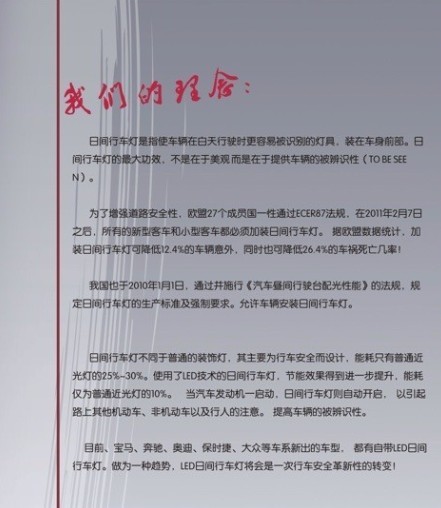 Special LED lamp, fog lamp, angel eyes LED projection lamp, LED daytime running lamp, Guangzhou Kwong Chi Electronic Technology Co., Ltd. the main products. Guangzhou Guang Chi Electronic Technology Co. Ltd. is a national related departments approved by the registered enterprise. Guangzhou Guangchi electronic technology limited company by the abundant strength, reasonable prices, excellent service and a number of enterprises to establish a long-term relations of cooperation. Guangzhou Guangchi electronic technology limited company cordially welcome from all walks of life come to visit, study, business negotiations.